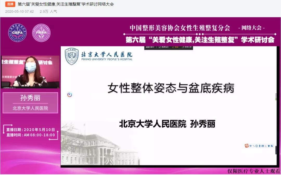 5月10日,由中國整形美容協(xié)會女性生殖整復(fù)分會主辦、北京大學(xué)人民醫(yī)院承辦、中國婦產(chǎn)科在線協(xié)辦的第六屆“關(guān)愛女性健康,關(guān)注生殖整復(fù)”學(xué)術(shù)研討網(wǎng)絡(luò)大會成功舉行。開幕式采用線上線下同步舉行。