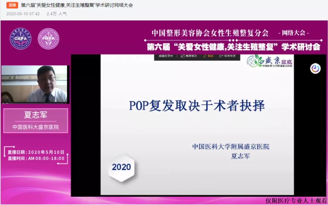 此次第六屆“關(guān)愛女性健康,關(guān)注生殖整復(fù)”學(xué)術(shù)研討網(wǎng)絡(luò)大會,是疫情下國內(nèi)婦產(chǎn)科領(lǐng)域網(wǎng)絡(luò)會議的首次嘗試,借助科技力量,開發(fā)、引進(jìn)媒體新技術(shù),秉承重學(xué)術(shù)、高質(zhì)量、創(chuàng)品牌的理念,邀請國內(nèi)女性生殖整復(fù)領(lǐng)域的知名專家進(jìn)行學(xué)術(shù)分享。