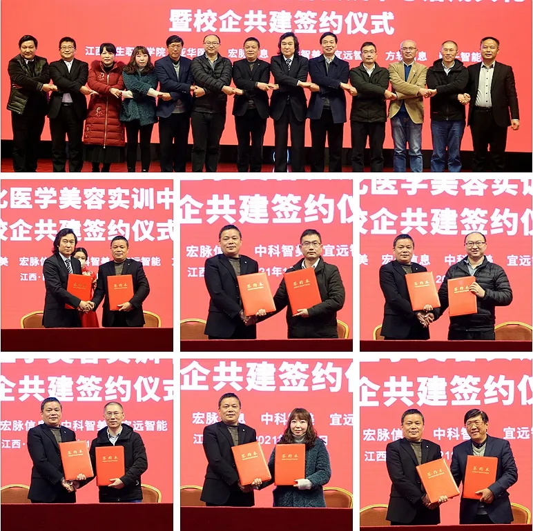 會上還舉行了簽約儀式,江西衛(wèi)生職業(yè)學院與亞華醫(yī)美、宏脈信息、宜遠智能、方軟信息、中科智美、影子智能等多家企業(yè)聯(lián)合共建數(shù)字化醫(yī)學美容實訓(xùn)中心,并為校企共建實訓(xùn)室授牌。多位數(shù)字化專家被江西衛(wèi)生職業(yè)學院聘為實訓(xùn)室授課專家。